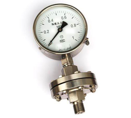 膜片壓力表的作用原理是基于彈性元件(測(cè)量系統(tǒng)上膜片)變形。膜片壓力表在被測(cè)介質(zhì)的壓力作用下,迫使膜片產(chǎn)生相應(yīng)的彈性變形---位移,借助連桿組經(jīng)傳動(dòng)機(jī)構(gòu)的傳動(dòng)并予放大,由固定于齒輪上的指針逐將被測(cè)值在度盤上指示出來(lái)。